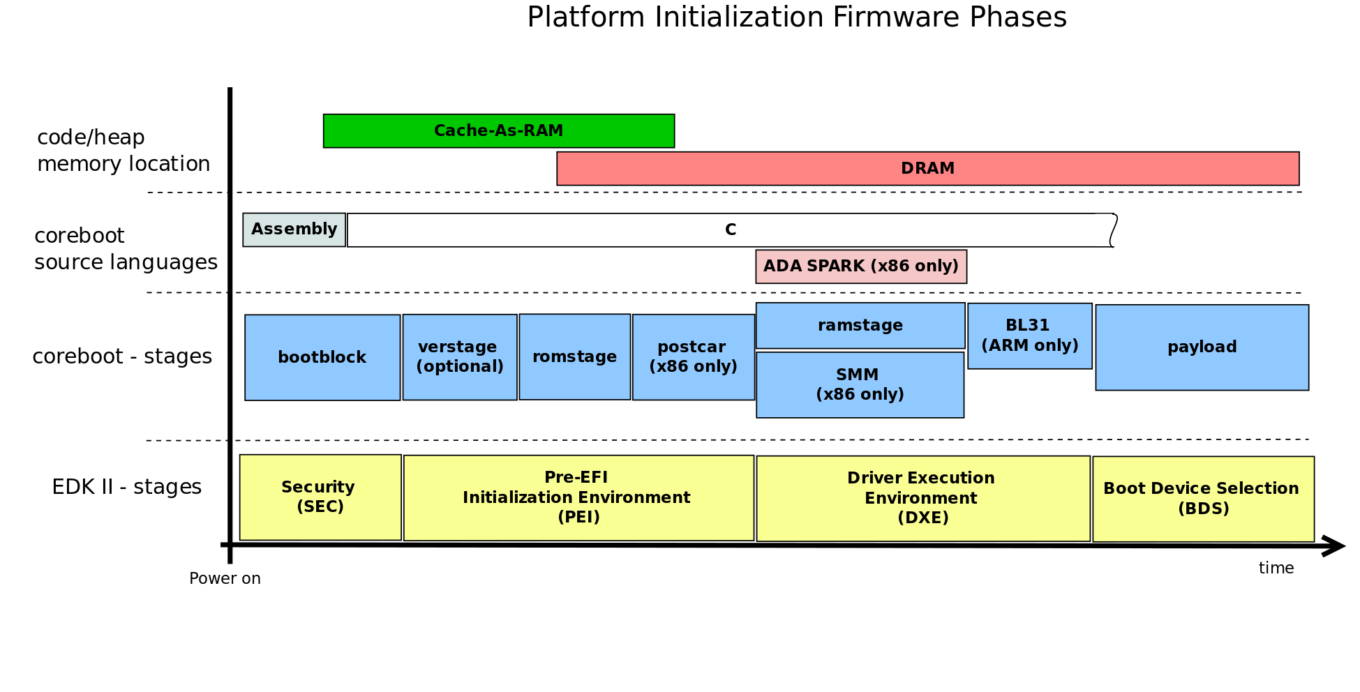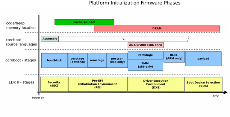 The coreboot architecture is outlined in the diagram below.