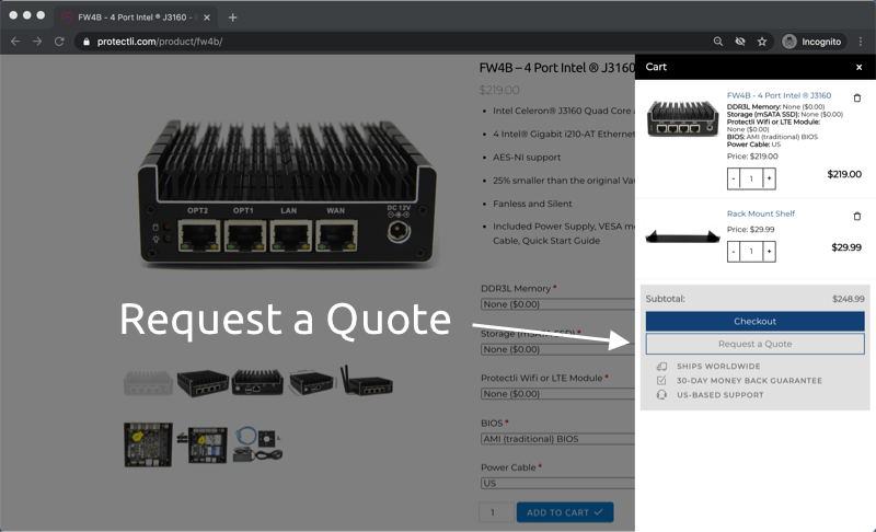 Add your products to the cart and request a quote from there. After entering your information you will be able to view/download your quote. Our team will be in touch shortly after we have reviewed your request.
